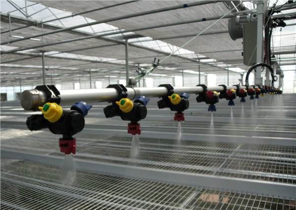 將有壓水流通過噴頭噴射到空中,呈雨滴狀散落在田間及農作物上的農田灌溉設備。其灌溉用水可經水泵增壓,也可利用高水位水源的自然落差。用水泵增壓的噴灌設備包括動力機、水泵、輸水管道和噴頭等部分;利用自然落差的噴灌設備可不用。