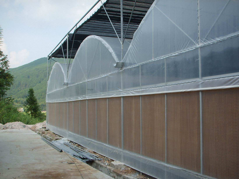 該系統具有降溫效果好、操作簡單等特點,通過濕潤凈化的空氣更有利于室內作物的生長,若配合遮陽系統綜合使用,降溫效果更為顯著。考慮冬季溫室的保溫,應在濕簾墻外側加裝一層保護膜或齒條外翻保護窗。