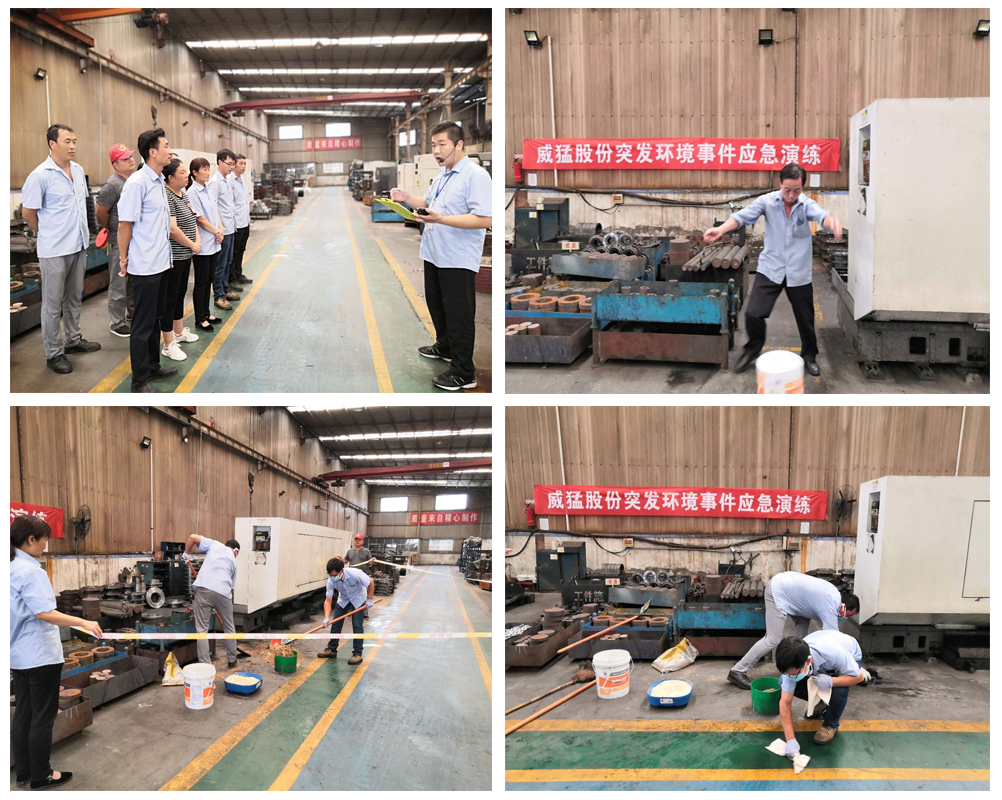 2020年8月31日中午,威猛股份開展了突發環境事件應急演練。演練以廢液壓油污染地面為假象事件而展開,此次演練目的旨在檢驗公司危廢物應急處置是否合理,環境應急隊伍的應急反應及應急預案的科學性、合理性和