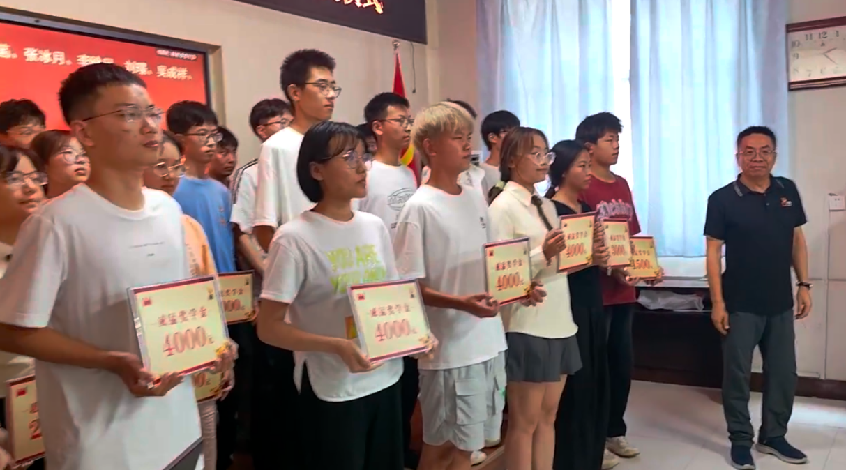 然后,翟坡鎮黨委書記張寒瑞、威猛股份總經理王思民為受表彰同學頒發獎學金。