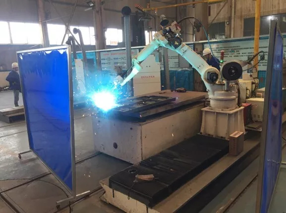 威猛股份的焊接機器人在此次攻堅戰中也做出了巨大貢獻,面對時間緊任務重的嚴峻問題,充分發揮了焊接機器人工作效率高、焊接質量好的優點,大大加快了生產進度,同時保證了設備的生產質量。設備生產期間,車間主任調集車間的骨干力量,不斷地攻克一個又一個難點,設計總工不時帶領設計人員到現場指導,協助生產盡快完成任務。