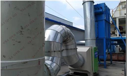 (5)有害氣體粉塵凈化。整個(gè)鋰電池的破碎、篩分和傳輸?shù)炔僮骶诿芊猸h(huán)境中進(jìn)行,各個(gè)通風(fēng)管道和物料傳輸通道均使用鋼材料密閉,將所有有機(jī)廢氣、粉塵被抽離進(jìn)入袋式除塵器,進(jìn)過(guò)光氧催化、堿液噴淋,徹底祛除有害粉塵和氣體。