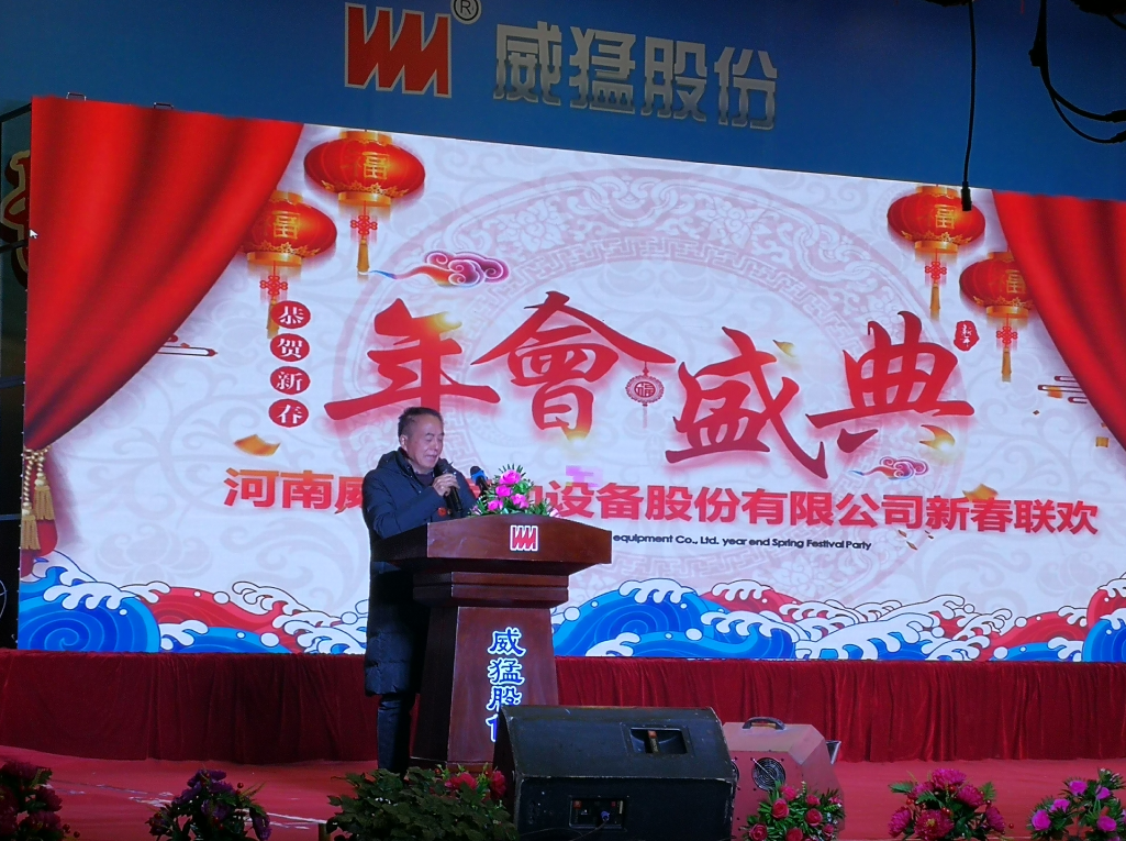 接著由總經理王思民做新年致辭,首先對全體員工2019年的付出表示感謝,對所有獲獎的威猛員工表示衷心祝賀,希望我們所有威猛人繼續踐行和發揚四個精神——奉獻精神、勞模精神、工匠精神、格物精神。對2020年的工作方向,總經理從“大專 業帶領”、“大智能行動”、“大數據支撐”、“大綠色賦能”、“大國際標準”、“大顛覆創新”、“大團結精神”七個方面進行了部署。之后,總經理衷心祝大家“開心度春節、平安過大年”。