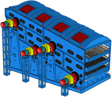 山西某建材公司原使用三層圓振篩40100,篩孔為30mm、20mm、3mm,處理量為1500t/h,兩年的時間內更換了2個設備廠家,均出現篩分效率低下、篩幫撕裂、橫梁斷裂等故障。經過我公司改造成3WFPS-X-36100后,處理量和篩分效率均到達客戶要求,同時解決了篩幫橫梁頻繁斷裂等隱患。