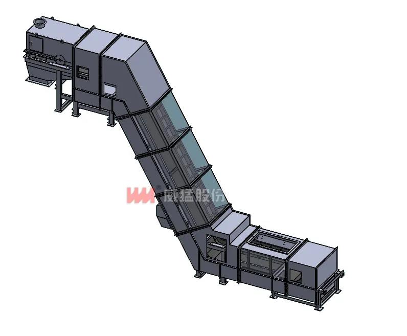 威猛股份在傳統大傾角輸送機的基礎上進行了完善及改進,研發生產了新型封閉式大傾角輸送機。該機不僅輸送效率高,而且整個物料輸送過程中都是在密閉的環境下進行,并設有除塵口,不會造成物料粉塵滿天飛的情況,既保護了環境,同時也不會對工作人員的身體健康造成影響。