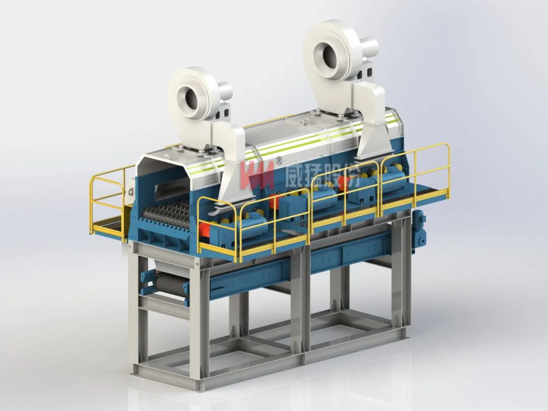 威猛股份研發(fā)的集成風(fēng)選機(jī)是利用空氣動(dòng)力學(xué)原理按物料輕重、密度、體積等不同物理特性進(jìn)行分離的設(shè)備,適用于廢紙回收初級(jí)分選,生活固體垃圾、工業(yè)和商業(yè)垃圾二次分選,垃圾衍生燃料產(chǎn)品原料分選,陳腐垃圾、生物降