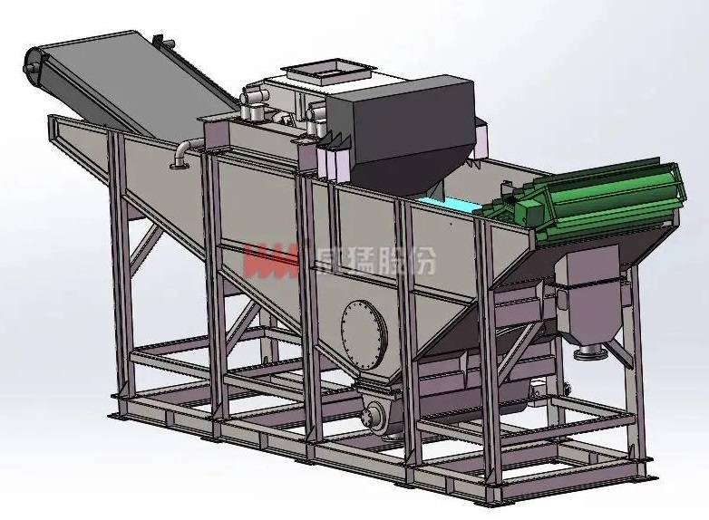 威猛股份研發的三重介質分選機利用固體廢物中各組分的摩擦系數和碰撞系數的差異進行分選,物料在斜面上運動或與斜面碰撞彈跳時,因產生的運動速度和彈跳軌跡不同而分離,能有效解決生活垃圾成分差別大(塑料瓶,紙屑
