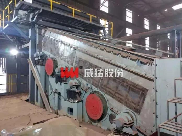威猛股份在江西某鋼廠使用的是塊礦復(fù)頻篩-C,該篩型篩板分節(jié)振動(dòng)篩箱不參振,可實(shí)現(xiàn)靜態(tài)密封,每節(jié)篩板振幅振頻可根據(jù)現(xiàn)場塊礦特性,處理量大小、粒度組成、含水量等工況條件不同,將振幅在10-20mm之間自由